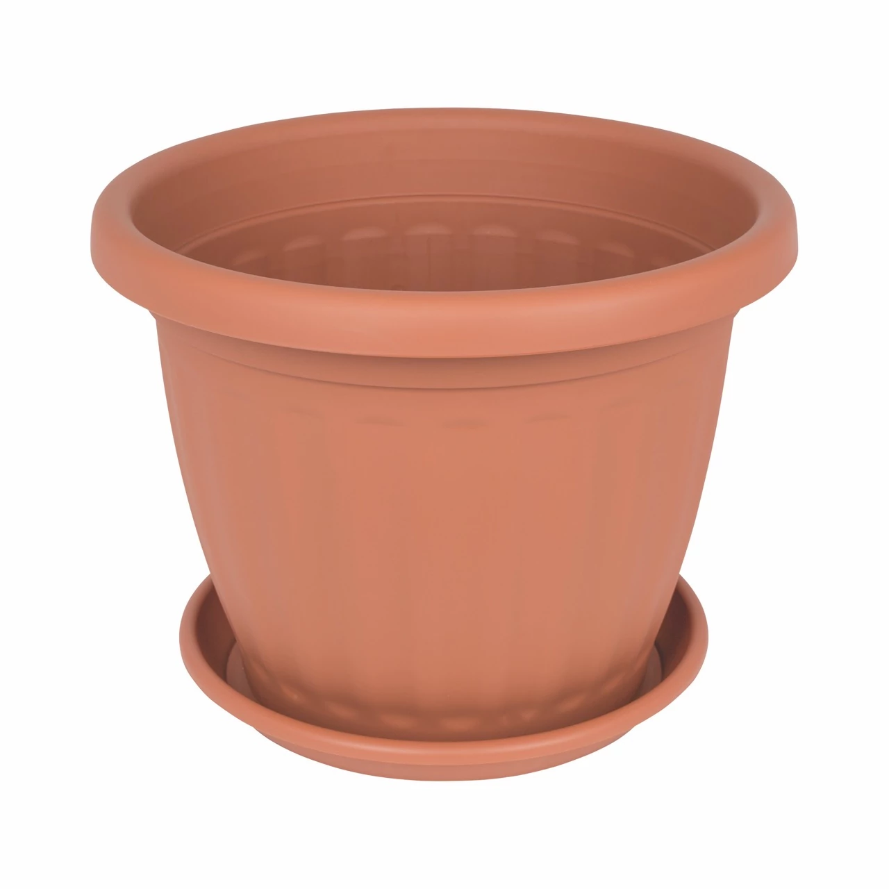 Dekoratív, az oldalán bordázott kialakítású, szép formájú műanyag virágcserép, amelybe közvetlenül ültethető a virág és egyéb növény.